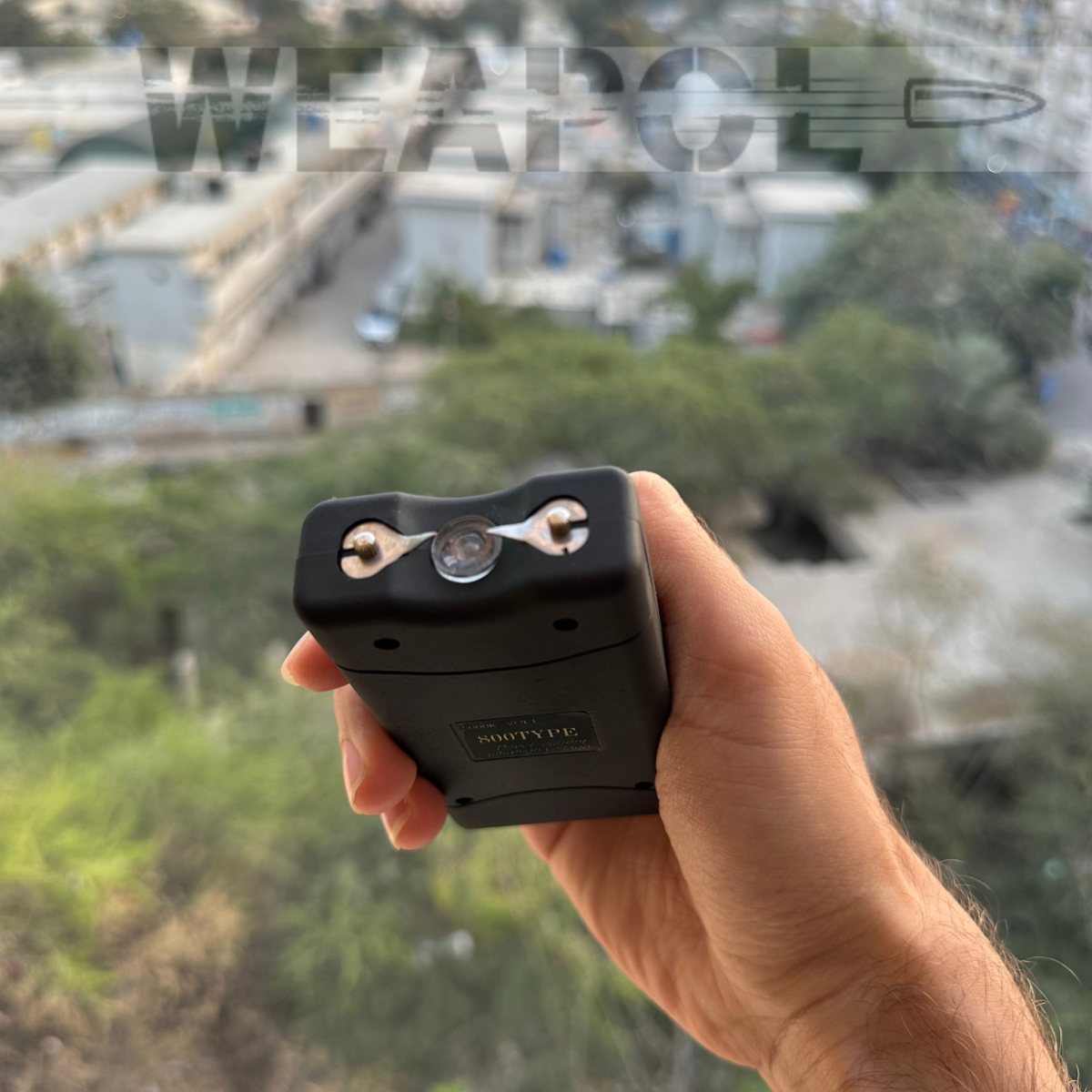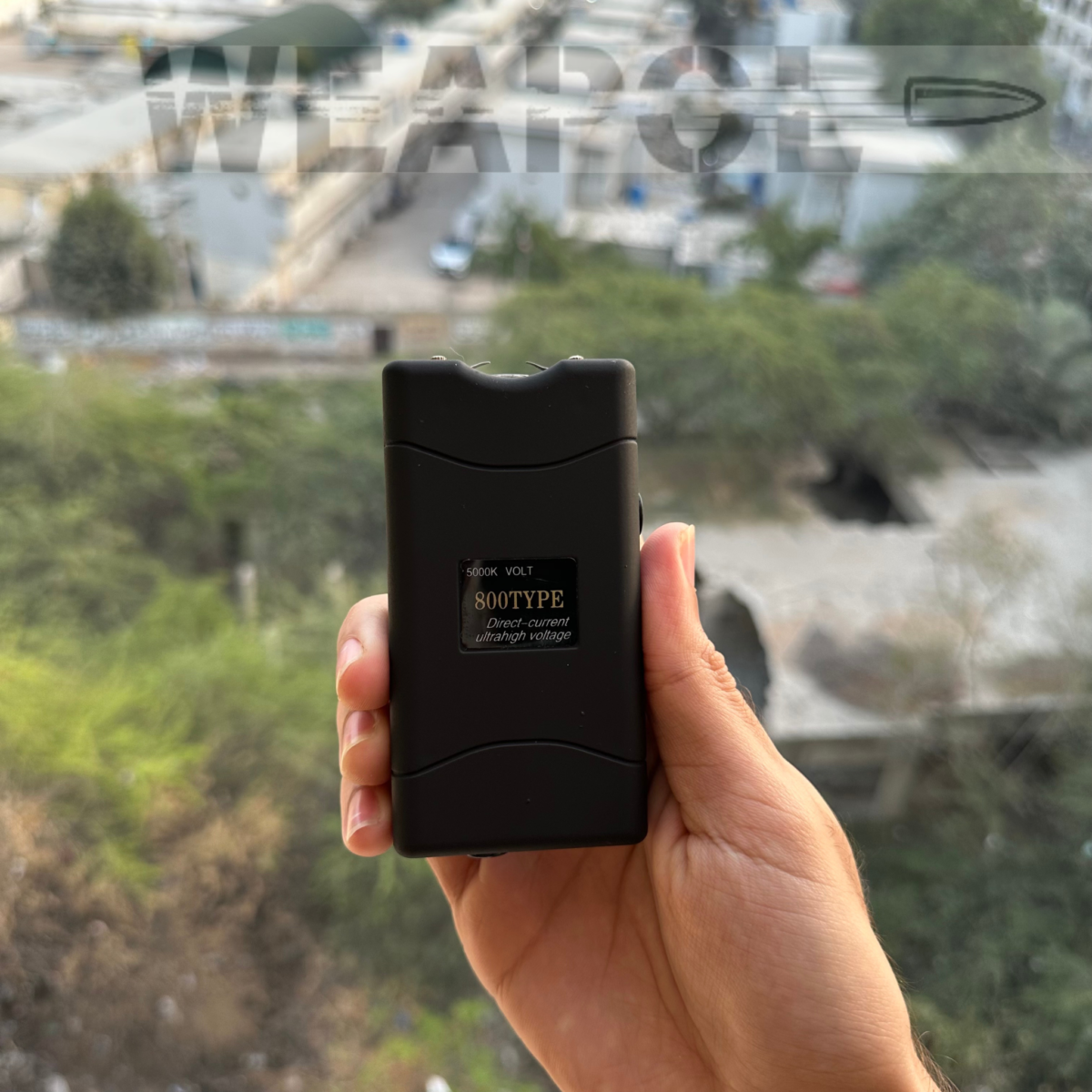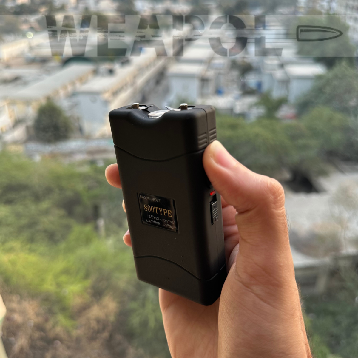 • ac0fb813-fe4f-4070-9e46-e8d4b9fd4453A 2-in-1 multifunctional stun gun with a flashlight with a powerful electric current of 5,000,000 volts.